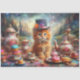 Step into a magical fairytale world where an adorable orange tabby kitten hosts the most enchanting tea party imaginable. Intricate Victorian tea sets and soft pastel backgrounds create a dreamy vintage-inspired scene that captures the heart of fantasy and cat lovers alike. Every carefully crafted detail tells a story of playful imagination and nostalgic charm. The kitten, dressed in an exquisite vintage hat, sits amid a wonderland of magical elements that spark creativity and wonder. This tissue paper transforms mixed media projects into extraordinary works of art.