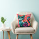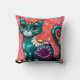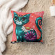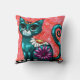 Whimsical Kitty Cat Sitting on Rug Floral Teal Throw Pillow