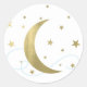 Whimsical Light Blue & Gold Moon Stars Baby Shower Classic Round Sticker