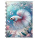 Dive into a whimsical underwater world with our Light Pink Betta Fish Notebook. The design showcases a graceful light pink betta fish, swimming amidst a surreal scene of iridescent bubbles, nautical plants, and flowers.