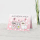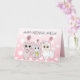 Add a name to this personalized pink llama, kitty cat and little cute mouse girl's birthday card.