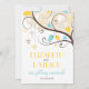 Add a sweet and playful touch to your big day with this customizable lovebird wedding invitation. It features an adorable illustration of two lovebirds perched on a tree branch, accented with whimsical heartstrings. This charming design is perfect for rustic, woodland, boho, or casual outdoor weddings.