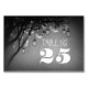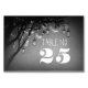 This table number card (or place card) features fireflies mason jars and hanging string lights on the black tree branches. Perfect table number card for rustic country wedding themes.