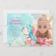 Sweet under the sea mermaid Birthday invitation. Flip our invite over to view a coordinating pink background for an extra special touch.