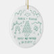Personalized first christmas wedding ornament, designed in a romantic whimsical doodle style. With the text "Merry and married". Featuring hand-drawn details like champagne glasses, hearts, a wedding cake, an engagement ring, and sweet bows with swirly ribbons, it’s a charming keepsake to remember your engagement year. Add your names and engagement date. All colours can be customized in the design tool, making it easy to match your style or holiday décor. A thoughtful gift for couples, fiancés, or as a special Christmas tree memory to treasure for years to come.