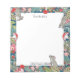 Perfect for anyone who loves mice and whimsy, this notepad can be personalized with a name for a custom look! Woodland forest mice are scurrying among leaves, ferns and flowers on a dark teal blue background. There are also berries and mushrooms for each mouse to enjoy! Greens, pinks and teal set off the gray mice. Reads, "From the desk of" at the top of the white note area. Original artwork by Tuzi Williams.