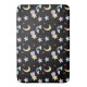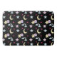 A cool pattern with happy stars, moon, clouds and rainbows on a black background.