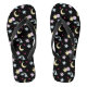 Whimsical Moon, Stars and Clouds Pattern on Black Flip Flops