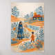 Whimsical Mother and Child Folk Art Illustration Poster