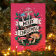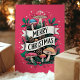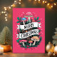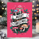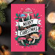 Whimsical Mushroom Merry Christmas Pink Holiday Card