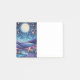 Sticky notes with a beautiful illustration. Whimsical and fanciful vibe. A big glowing moon with stars all around. Hanging over a lovely landscape of trees, mountains and a winding river. Awesome magical mystical vibe.