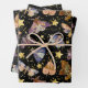 Whimsical Night Moth Butterflies Faux Gold Stars Wrapping Paper Sheet