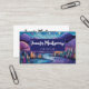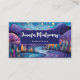 Business cards with a beautiful illustration. Whimsical and fanciful vibe. A lovely landscape of trees, mountains and a winding river. Mystical vibe.