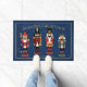 Personalized Nutcracker Doormat – Seasons Greetings Welcome guests in festive style with this personalized Nutcracker doormat. Four charming Nutcracker soldiers stand proudly in the centre of this design, set against a deep tone-on-tone blue background with holly leaves and berries. The top of the mat features the words "Season's Greetings," while the bottom offers a space for personalization, making it a unique addition to your holiday decor. Perfect for entryways, this doormat adds a touch of traditional Christmas magic and warmth to your home.