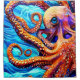 Whimsical Octopus Blue Ocean Wave Cubism. The light blue and deep blue colours blend together in this dreamy art piece, making it an exceptional choice for anyone looking for a splash of colour to add to their home or office.