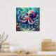 Whimsical Octopus Oil Painting Nautical Beach Poster