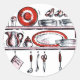 Antique country kitchen in black and white with bits of red take a person back in time to the good old days. Grandma's kitchen shelf looked just like this- hanging coffee and teacups, plates, matching serving dishes, bowls, a pitcher for ice cold sweet tea, hanging kitchen utensils, and her own personal cookbook full of recipes. All set up on wooden shelves painted red. This vintage art is a simple black and white illustration with red for punch. This whimsical art is the perfect idea for many holidays and special occasions, such as Mother's Day, birthdays, get well wishes, thinking of you, and more. Chefs, bakers, cooks, wives, mothers, will all appreciate this.