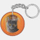 Porte - clé avec votre photo de chat personnalisé (ou autre) (en option) encadrée par un design orange attrayant.