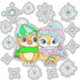 Festive Christmas Winter Whimsical Owls Couple and Snowflakes Sticker