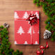 A pattern of pale pink Christmas trees appears on this bright red wrapping paper.