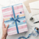 Whimsical Pastel Striped Heart and Star Pattern De Wrapping Paper