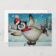 Whimsical Penguin Ice Skating Watercolor Art Postcard