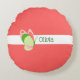Cute round pillow for nursery or girl's room features watermelon pink and green butterfly on pink and white background. Personalize with name or initials.