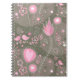 Whimsical Pink and Grey Hearts, Birds and Flowers Notebook