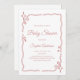 Add a touch of sparkle and charm to your baby shower with this whimsical pink invitation, featuring a playful wavy border accented with shining stars and curls. The elegant script font paired with fun decorative details makes this design perfect for celebrating the mom-to-be in style — whether you're hosting a chic afternoon tea, a cozy brunch, or a glam baby sprinkle.