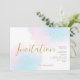 Whimsical Pink Blue Watercolor Gold Splash Wedding Invitation
