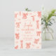 Tie up the perfect party plans with this cute bow-themed invite! Featuring a cream background with cute, hand-drawn pink bows and playful script lettering. A sweet birthday party invitation for any age, up to quinceañera and sweet sixteen. Easily customize it for a slumber party, pamper party, tea party, or any girly theme. The back is covered in a fun bow pattern for an extra touch of charm. View the collection linked on this page for matching items, or visit our store for more birthday party invitations.