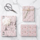 A set of three coordinated gift wrap sheets decorated with Eiffel towers, umbrellas, hot air balloons, and other Parisian icons.