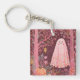 Whimsical Pink Ghost in Enchanted Floral Forest Keychain