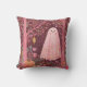 Whimsical Pink Ghost in Enchanted Floral Forest Throw Pillow