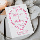 Set the tone for your celebration with this pink heart wedding invitation, featuring handwritten pink script and a hand-drawn heart on a white background. The contrast between the vibrant pink lettering and white space creates a romantic yet modern look that feels playful, fresh, and timeless. The couple’s names are displayed at the center of the heart, with the wedding details arranged below in a balanced, easy-to-read layout. Suitable for year-round weddings and a variety of styles, this invitation can be personalized with your names, wedding date, and venue to create wedding stationery that feels warm, joyful, and beautifully designed.