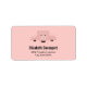 Address labels with a drawing of a cute pink pig's face. Wearing a black bow tie. Lifted up by his black cloven hooves and peering over a table. Cute and whimsical drawing. Set on a pink background with some faded hearts here and there.