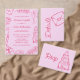 A whimsical hand-drawn wedding invitation featuring playful sketch-style icons on a soft blush pink background. This fully customisable design allows you to personalise all wedding details, including names, date, time, venue, and wording. Perfect for couples seeking a cute, romantic, and modern stationery style.