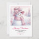 Celebrate the season with this cute watercolor pink coquette snowman kids Christmas card, set in a magical snowy forest. Editable text lets you personalize instantly, and the digital download provides an easy, fast, and festive holiday greeting.