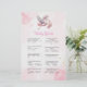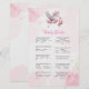Challenge your guests with fun and surprising baby facts in this “Baby Trivia” game card, surrounded by whimsical pink clouds and a gentle stork design. The pastel colours and glittering stars add a sweet, feminine charm while keeping the game visually on theme. It’s an engaging way to educate and entertain at the same time.