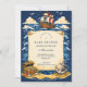 This pirate baby shower design features a whimsical storybook illustration with playful pirate children, tropical palms, treasure chests, and a vintage parchment map at the center. Inspired by classic children’s book art, the warm color palette and detailed scene create a fun, adventurous atmosphere without feeling cartoonish. Ideal for parents who love nautical themes, pirate adventures, and timeless illustrated styles, this design is fully customizable for your celebration details.