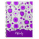 Whimsical purple white hearts flowers floral name notebook
