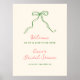 Whimsical bridal shower downloadable welcome poster featuring a beautiful hand-drawn bow in a fun and playful style, accompanied by a casual, handwritten font that perfectly captures the excitement and joy of the occasion.