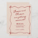 Designed for retro-loving pairs, this invitation set is a masterpiece of whimsy and elegance. The hand-illustrated elements dance across the page in a retro funky wavy doodle style, creating a visual feast that's sure to delight your guests. The modern, unique handwriting adds a personal touch, while the scribble details infuse each invitation with character and charm.
