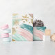 A dreamy and colourful abstract wrapping paper featuring rainbow-inspired brushstrokes in soft pastels—pink, mint green, light blue, and pale yellow—accented with shimmering gold textures, scattered stars, and dotted details. Ideal for fantasy lovers, dreamy aesthetics, and cheerful seasonal vibes like spring, summer, birthdays, or pride celebrations.