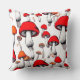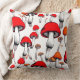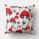WHIMSICAL RED FLOATING MUSHROOMS DIGITAL ART THROW PILLOW