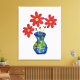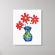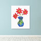 Whimsical Red Flowers in Blue Vase Canvas Print