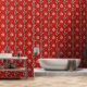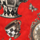 Whimsical AI generated digital art pattern features Wonderland inspired chequerboard teacups and teapot along with vintage pocket watches on dramatic red background. Perfect for accent walls and a variety of other DIY home decor projects!