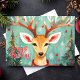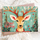 Celebrate the holidays with this charming reindeer greeting card, featuring a whimsical reindeer adorned with festive ornaments and surrounded by Christmas trees and snowflakes. The hand-painted design adds a unique and cozy feel, perfect for sending heartfelt holiday wishes. Ideal for spreading joy and warmth this Christmas season.