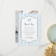 A hand-drawn photo thank-you card to match our Whimsical Retro Blue Stripes Wedding collection. This design features a navy blue hand-drawn frame against a light blue striped background and a custom heartfelt thank-you message to express your gratitude to friends and family. At the top of the card, there is a doodle scribble illustration of a whimsical bow. The back of the card features your custom photo. View the collection linked on this page for the matching wedding set. Feel free to message me with any questions, I'll be happy to help!