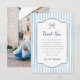 Whimsical Retro Bow & Blue Stripes Wedding Thank You Card